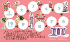 クラブショップ内でのお買い物$12毎にスタンプ1個捺印し、10個スタンプが貯まりますと、次回お買い上げの際に$6割引きとなるお得なスタンプカードを発行しております。